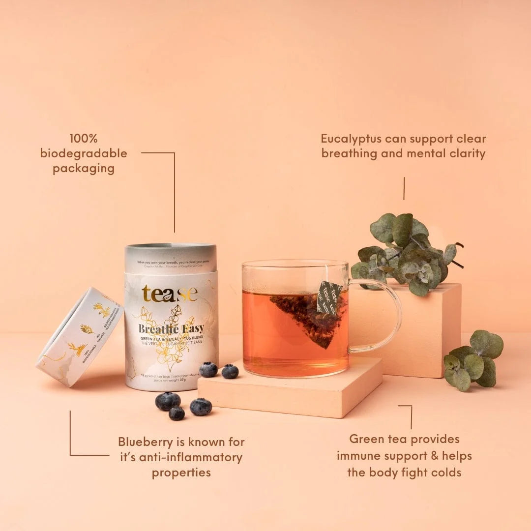 Le saviez-vous : Le thé vert n'est pas seulement une douce source d'énergie, mais regorge également d'antioxydants qui soutiennent la santé cardiaque et la clarté mentale. Combiné à l'eucalyptus et à l'églantier, ce mélange favorise une respiration plus profonde et la pleine conscience, parfait pour ceux qui recherchent le bien-être mental et physique.