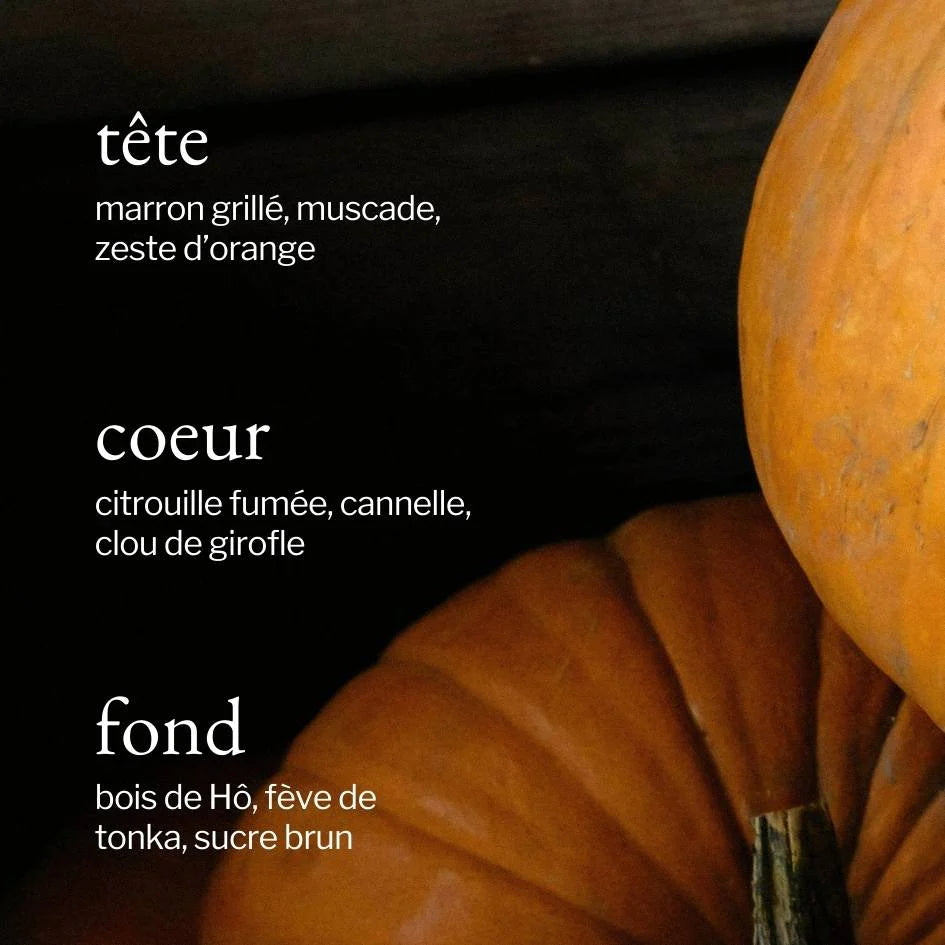 notes de coeur : citrouille fumée, cannelle, clou de girofle